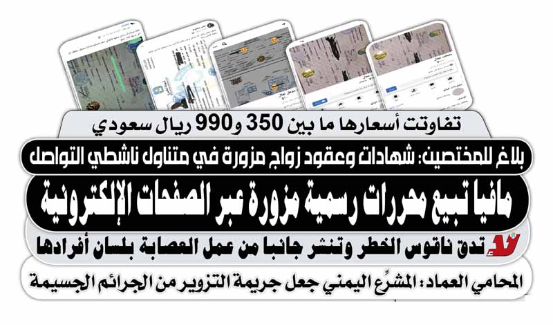 تفاوتت أسعارها ما بين 350 و990 ريال سعودي.. مافيا تبيع محررات رسمية مزورة عبر الصفحات الإلكترونية