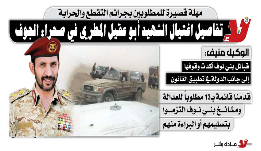 مهلة قصيرة للمطلوبين بجرائم التقطع والحرابة.. تفاصيل اغتيال الشهيد أبو عقيل المطري في صحراء الجوف