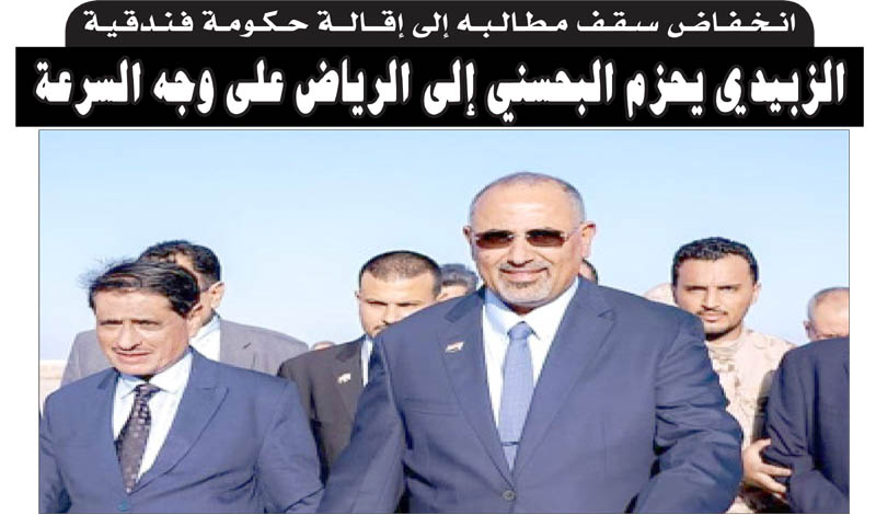 انخفاض سقف مطالبه إلى إقالة حكومة فندقية.. الزبيدي يحزم البحسني إلى الرياض على وجه السرعة