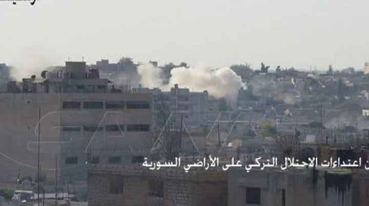 جدد الاحتلال التركي ومرتزقته التكفيريين عدوانهم على بلدة أبو راسين والقرى المحيطة بها بريف الحسكة شم. .