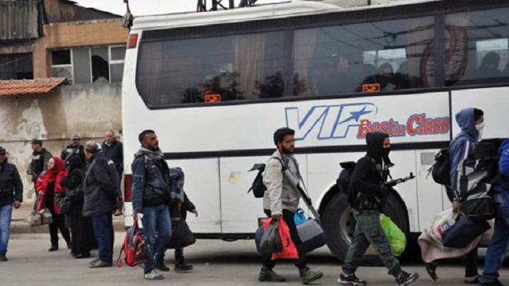استمرار خروج المسلحين وعائلاتهم من حي بزرة بدمشق وحي الوعر بحمص