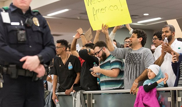 الـمــزيـدتظاهر آلاف الاشخاص خارج السفارة الأمريكية في لندن، اليوم السبت، اعتراضا على الأمر التنفيذي الذي أصدر. .