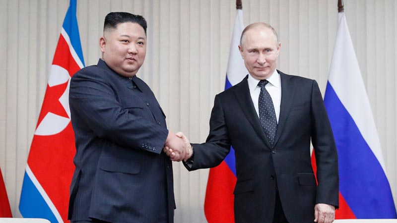 تعهد زعيم كوريا الشمالية كيم جونغ أون "بوضع يده في يد" الرئيس الروسي فلاديمير بوتين وتعزيز التعاون ا. .