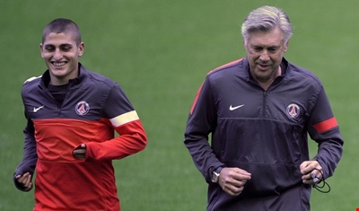 الـمــزيـدوضع الإيطالي كارلو أنشيلوتي، مدرب بايرن ميونيخ الألماني، مواطنه ماركو فيراتي، لاعب وسط باريس سان جير. .