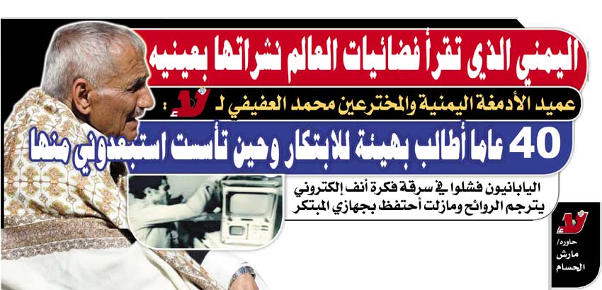 المهندس محمد العفيفي عميد المخترعين اليمنيين في حوار مع «لا»:نلت براءة اختراع قبل 45 عاما وتستخدمه الآن كل الفضائيات في العالم