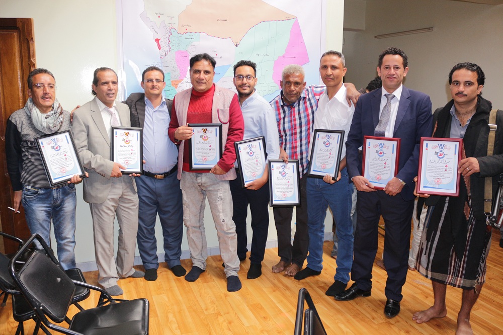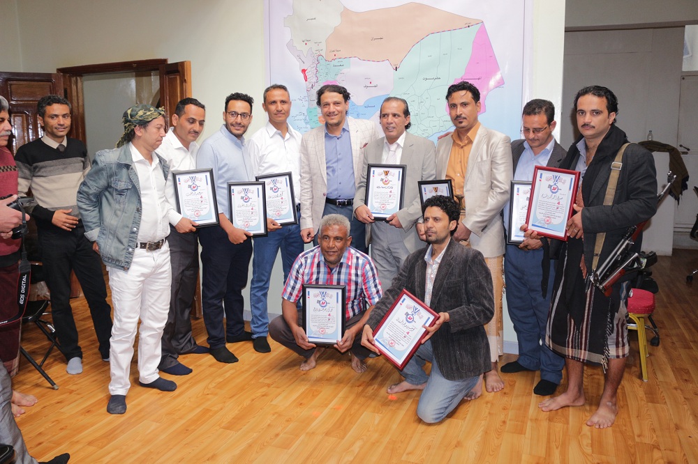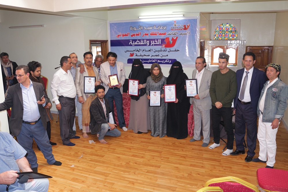 وفي نهاية الحفل، جرى تكريم طاقم عمل الصحيفة، لجهودهم في إنتاج عمل صحفي يليق بمقام لحظة اليمن العصيبة التي ينتزع فيها كرامته وحريته، وتفانيهم في العمل الدؤوب تحت ظروف صعبة يلوح الموت فيها في كل لحظة.