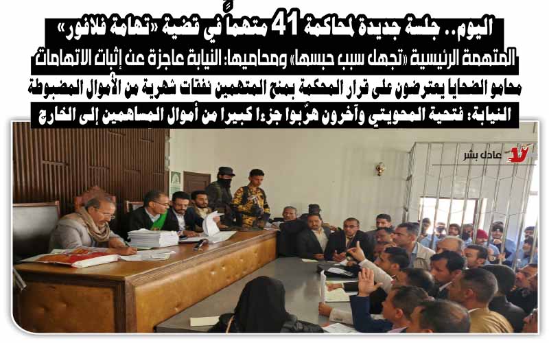 تعقد محكمة جنوب شرق الأمانة، اليوم الأربعاء، جلسة جديدة للنظر في قضية ما تسمى بـ«شركة تهامة فلافور للاستثمار والتطوير العقاري» ممثلة برئيس مجلس إدارتها فتحية المحويتي و40 شخصاً آخرين، المتهمين بالنصب والاحتيال على أكثر من 13500 مواطن، وجمعوا مبالغ مالية من الضحايا تتجاوز 136 مليار ريال يمني و19 مليون سعودي و7 ملايين دولار.