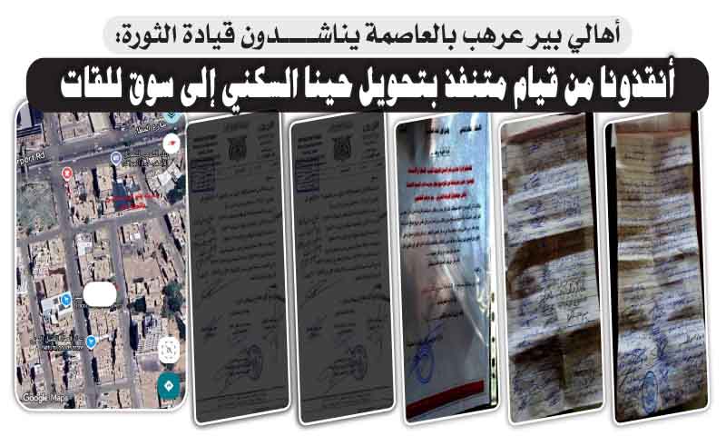 أهالي بير عرهب بالعاصمة يناشدون قيادة الثورة:أنقذونا من قيام متنفذ بتحويل حينا السكني إلى سوق للقات